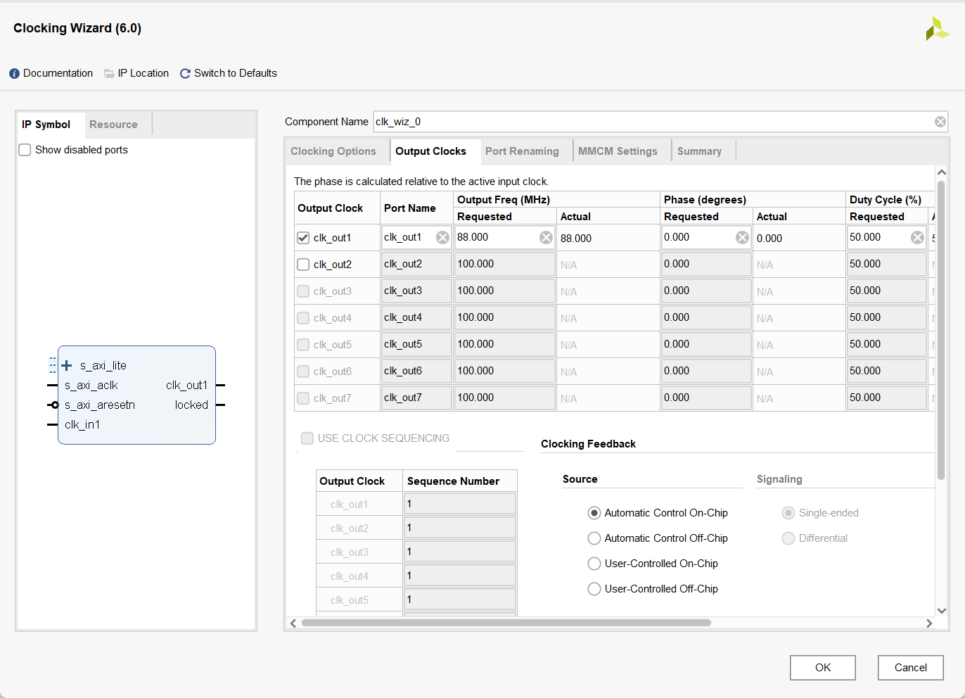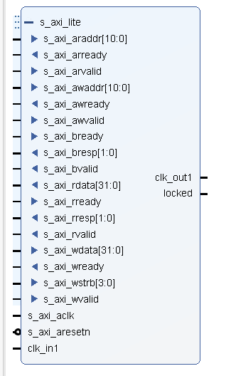 最后利用 Vivado 现有的 Clocking,用 AXI4Lite 协议(握手协议)来读写其内部寄存器,从而达到改变频率和相位的效果。